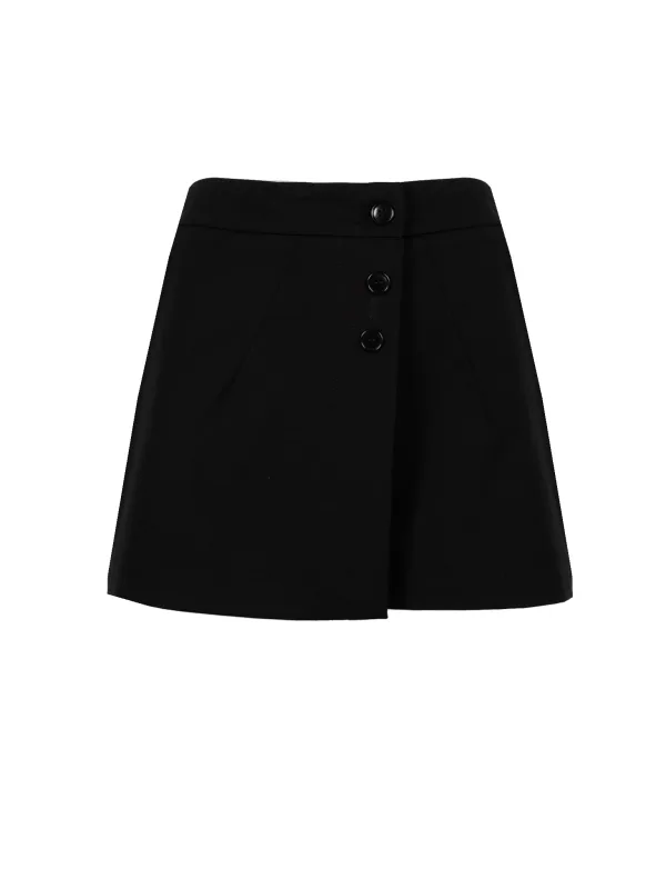 Nauwsluitend bovenaan, losse pijpen Hoge tailleband Een plooi aan de voorkant die een rok imiteert Extra elastische band aan de achterkant Kan worden gesloten met een rits en knopen Steekzakken aan de zijkant Gemaakt van hoogwaardige stof met stretch