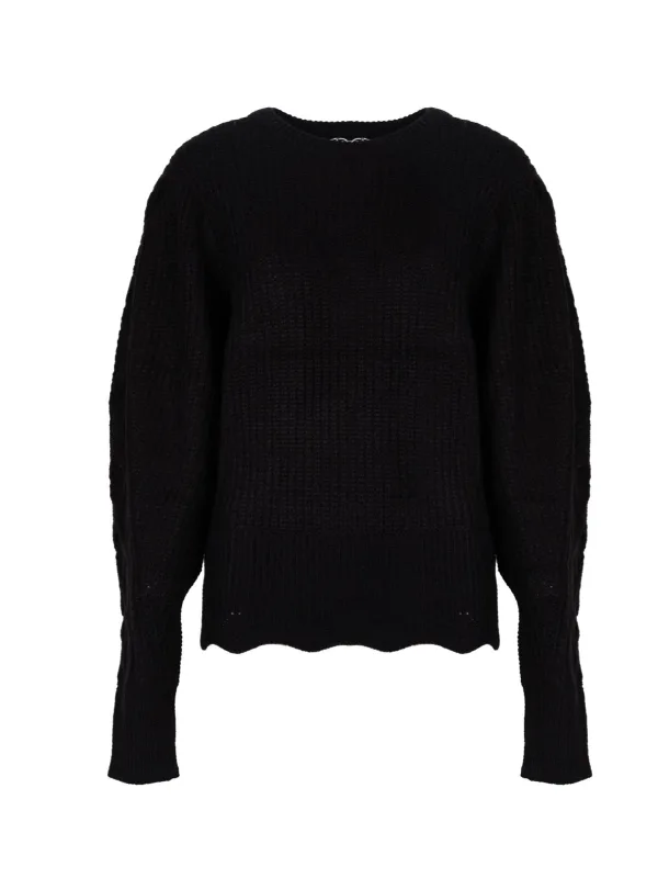 Eenvoudig model Ronde halslijn Pofmouwen Mouwen en zoom met decoratief breisel Bedrijfslogo patch op de linkerkant Gemaakt van gebreide stof van hoge kwaliteit