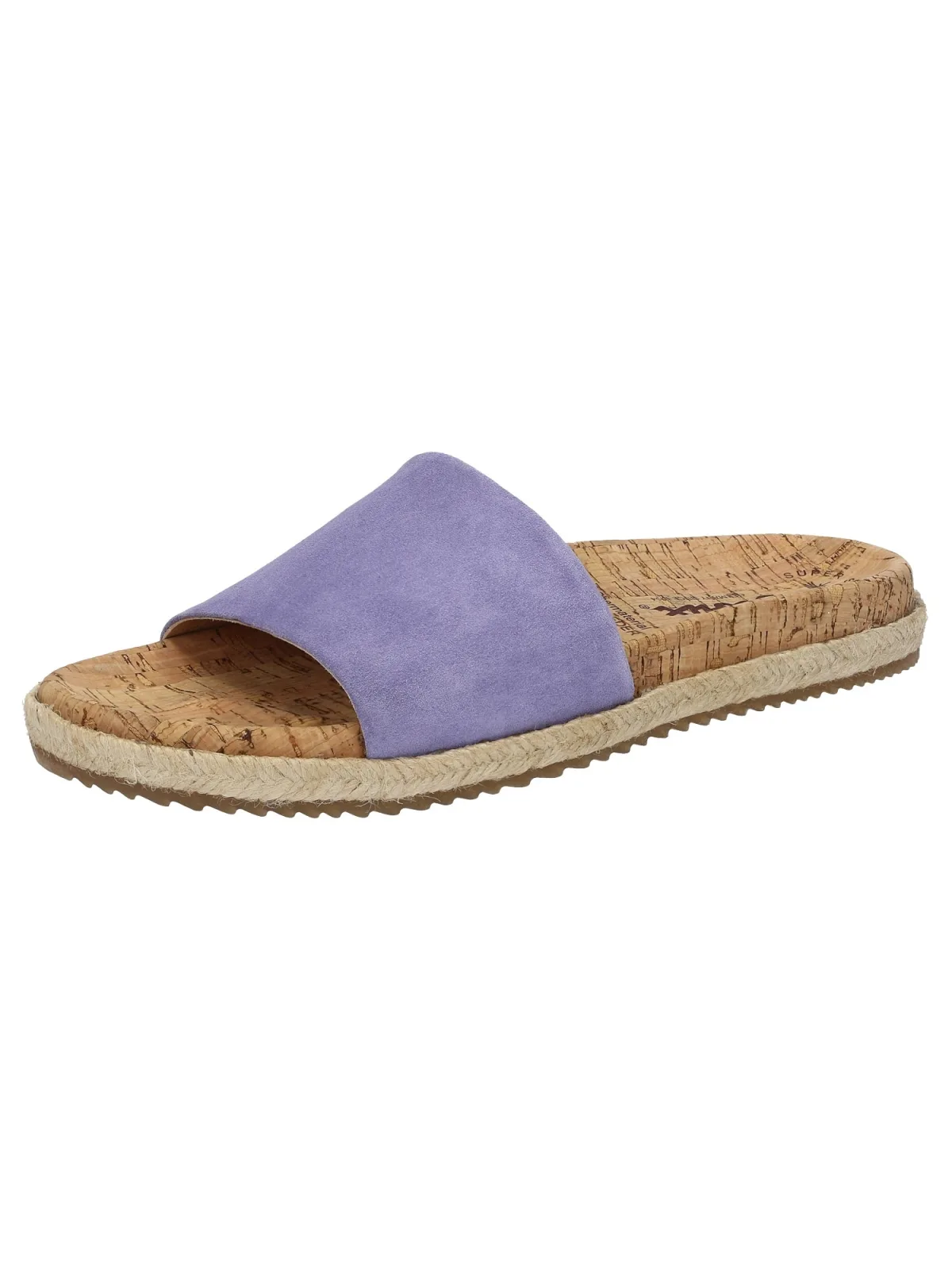 Design: Anatomisch gevormd voetbed, Zool van kurk; Type sluiting: Slip; Materiaal: Leer; Motief: Effen; Materiaal: Glad leer, Textiel; Schoenneus: Open toe; Extra's: Velours look; Hakhoogte: Platte hak (0-3 cm)