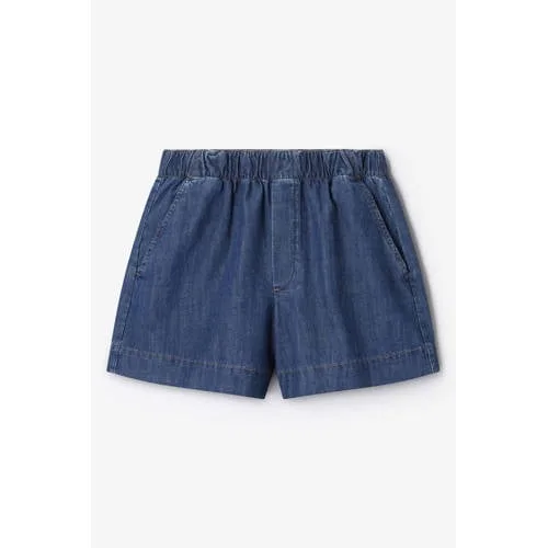 Blauwe denim short van Sissy-Boy. De Bibianne short heeft een hoge taille, een elastiekenband in de taille en twee steekzakken aan de voorzijde. Verder heeft de short een blauwe kleur en een denim kwaliteit. Materiaal: 100% katoen.