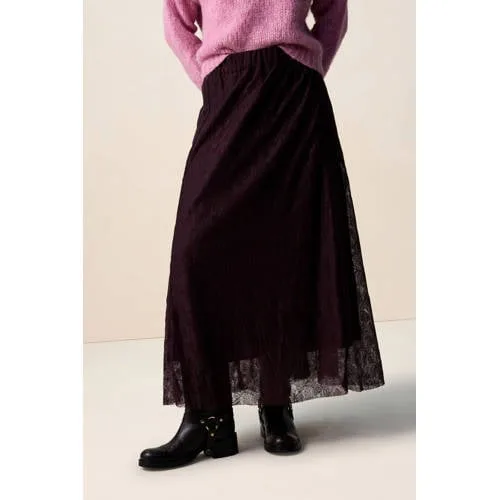 Bruine kanten maxi rok van Sissy-Boy. De rok heeft een hoge taille met een elastische band en een lange maxi-lengte. Verder heeft de rok een bruine kleur met een all-over kanten design. Het model heeft een lengte van 1,72 m en draagt maat S. Materiaal: 100% viscose.