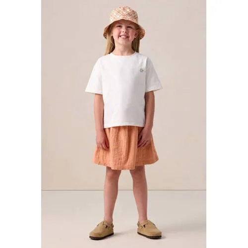 Oranje rok met embroidery van Sissy-Boy. Het rokje heeft een hoge taille, steekzakken, A-lijn model, korte lengte en een elastische tailleband. Verder heeft het een all-over embroidery print in de vorm van cirkels.