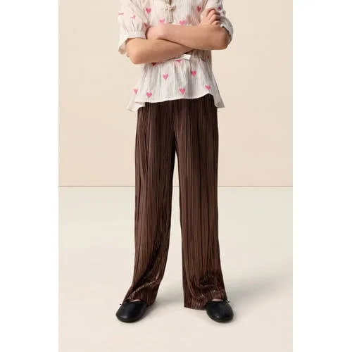 Gouden plissé broek van Sissy-Boy. De broek heeft een elastieken tailleband en loopt wijd uit. Verder is de broek gemaakt met een plissé kwaliteit stof met goudkleurige details. Materiaal: 100% polyester.