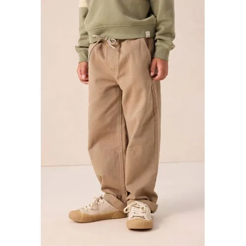 Bruine pull on broek met aantrekkoorden van Sissy-Boy. De broek heeft een elastische band met aantrekkoorden, twee steekzakken aan de voorzijde en twee opgestikte zakken aan de achterzijde.