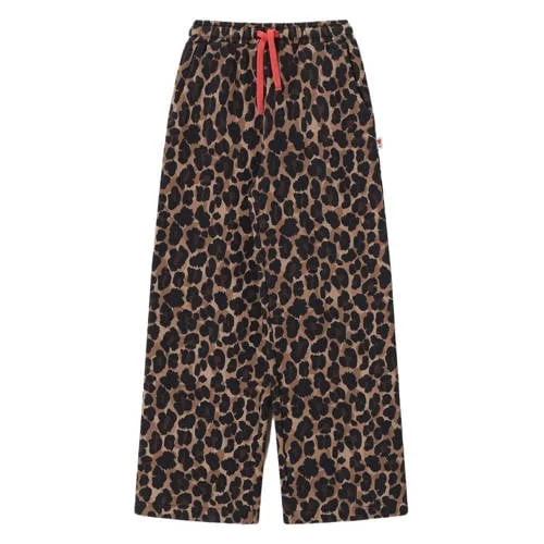 Bruine wide leg Pola sweatpants met leopard print van Sissy-Boy. De sweatpants hebben wijd uitlopende broekspijpen, een hoge taille, steekzakken en een elastiekenband in de taille met een aantrekkoord. Verder heeft het een all-over leopard print. Materiaal: 100% katoen.