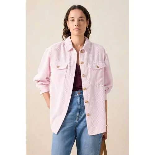 Lichtroze corduroy jack van Sissy-Boy. Het jack heeft lange mouwen, een kraag, een knoopsluiting, opgestikte zakken en een relaxed fit. Daarnaast heeft het een roze kleur met een corduroy rib kwaliteit. Het model heeft een lengte van 1,74 m en draagt maat S. Materiaal: 88% polyester, 11% nylon, 1% elastaan.