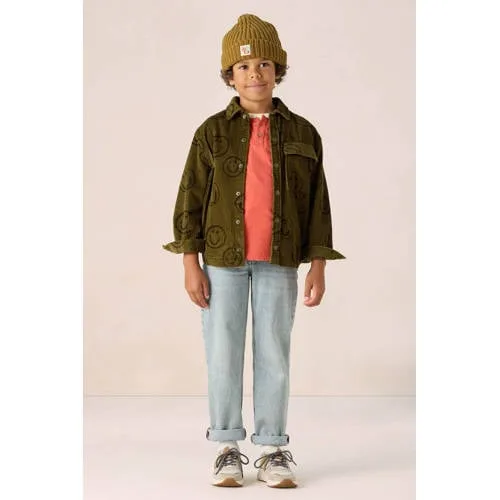 Donkergroen rib overhemd met smileys van Sissy-Boy. Het overhemd heeft lange mouwen, een knoopsluiting, een kraag, één borstzak en een relaxed fit met verlaagde schouders. Verder heeft de blouse een all-over smiley print en is gemaakt van een groene corduroy kwaliteit. Materiaal: 100% katoen.