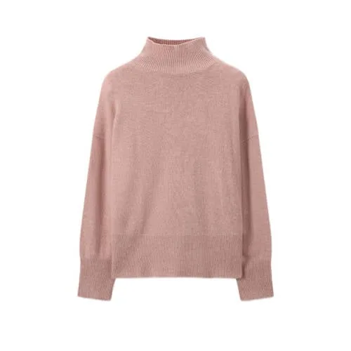Roze coltrui van Sissy-Boy. De coltrui heeft lange mouwen, een hoge geribde col en een boxy fit. Materiaal: 50% wol, 50% yak.