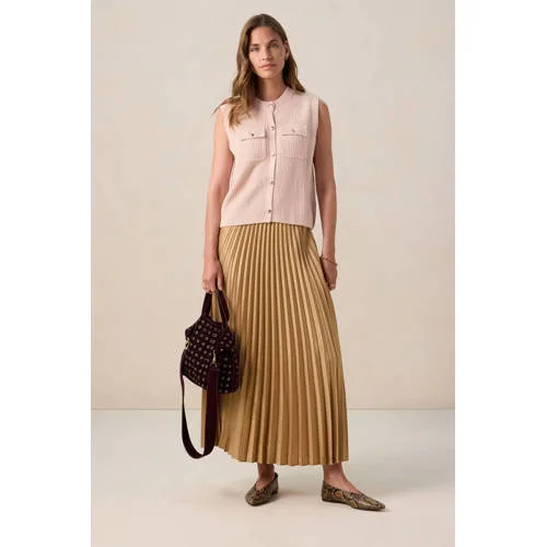 Lichtroze gilet met knoopsluiting van Sissy-Boy. Het gilet heeft een ronde halslijn, twee borstzakken, een regular fit en is mouwloos. Verder is het fijn gebreid en afgewerkt met gouden knopen. Materiaal: 60% katoen, 40% acryl.