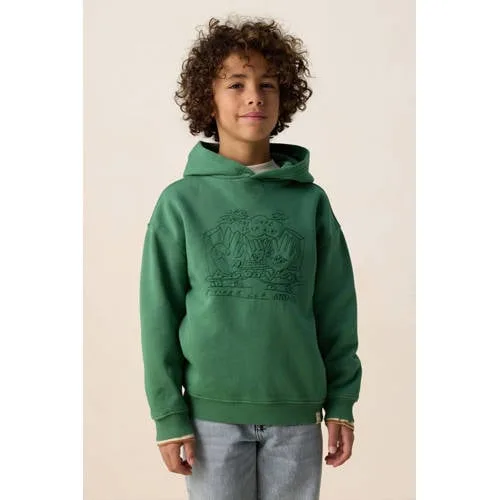 Donkergroene hoodie met embroidery van Sissy-Boy. De hoodie heeft lange mouwen, een ronde hals, een capuchon en een relaxed fit. De binnenzijde van de capuchon heeft een wafel textuur. Daarnaast heeft de hoodie een donkergroene kleur met een geborduurd artwork op de voorzijde.