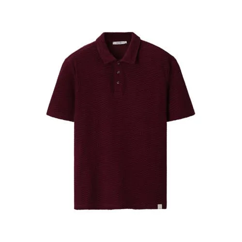 Donkerrode badstof polo van Sissy-Boy. De polo heeft korte mouwen, een klassieke polokraag, een knoopsluiting aan de voorzijde en een regular fit. Verder heeft het een donkerrode kleur met een badstofkwaliteit. Materiaal: 100% katoen.