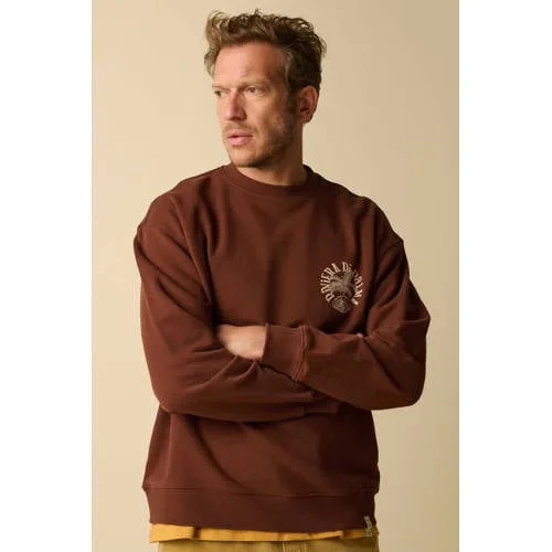 Donkerbruine sweater met artwork van Sissy-Boy. De sweater heeft lange mouwen, een ronde halslijn, ribboorden, een relaxed fit en artwork aan de voorzijde. Materiaal: 100% katoen.