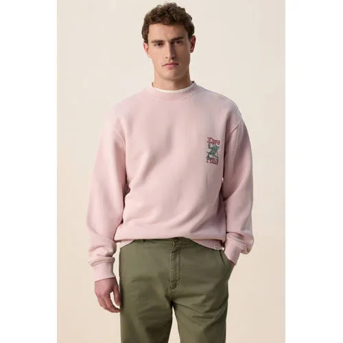 Lichtroze sweater met artwork van Sissy-Boy. De sweater heeft lange mouwen, ribboorden, verlaagde schouders en een relaxed fit. Verder heeft de sweater een lichtroze kleur en een opgedrukt artwork met rode details. Materiaal: 100% katoen.