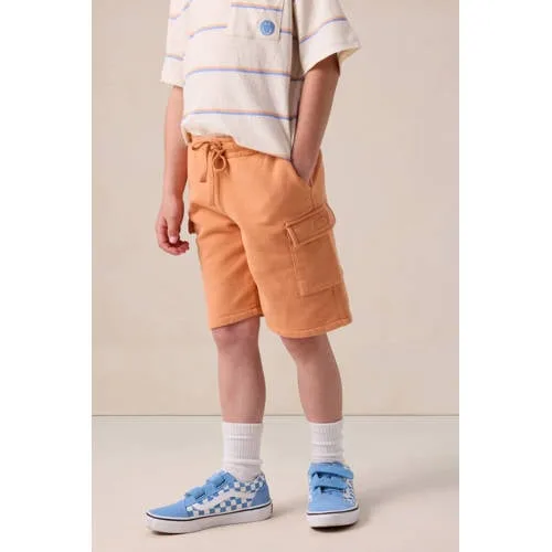 Oranje cargo short van Sissy-Boy. De short heeft een elastische tailleband met aantrekkoorden, steekzakken aan de voorkant en twee opgestikte zijzakken. Verder is de short gemaakt van een sweatstof kwaliteit.