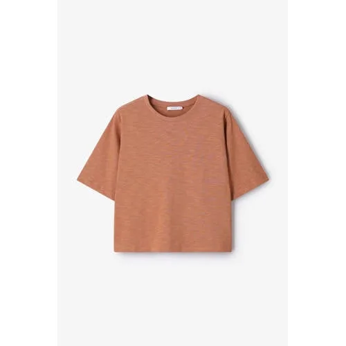 Donkerroze boxy T-shirt van Sissy-Boy. Het T-shirt heeft een ronde halslijn, korte mouwen en een boxy wijde fit. Materiaal: 64% katoen, 36% tencel.