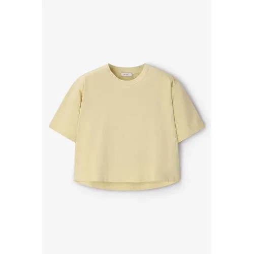 Lichtgeel boxy T-shirt van Sissy-Boy. Het T-shirt heeft korte mouwen, een ronde halslijn, verlaagde schouders en een boxy fit. Materiaal: 100% katoen.