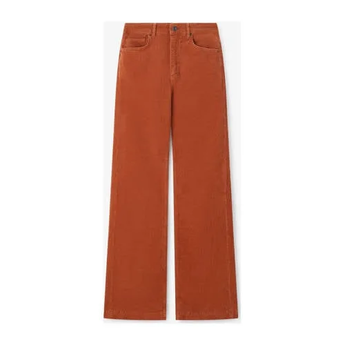 Bruine corduroy flaired broek van Sissy-Boy. De broek heeft flaired vallende broekspijpen, een 4-pocket model en een knoop- en ritssluiting. Materiaal: 98% Katoen, 2% Elastaan