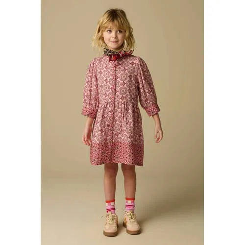 Lichtroze jurk met print van Sissy-Boy. De jurk heeft driekwart pofmouwen, een ronde halslijn en een knoopsluiting. Verder heeft de jurk een lichtroze kleur met een all-over mozaïek print.