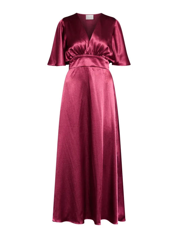 Design: Gevoerde zoom/rand, Rechte zoom, Diepe snit/decolleté; Materiaal: Satijn; Halstype: V-hals; Motief: Effen; Details: Gedrapeerd; Extra's: Glanzend, Op staal naden, Gladde stof; Lengte: Lang/maxi; Snit: Getailleerd; Pasvorm: Normale pasvorm; Armlengte: Halve mouw