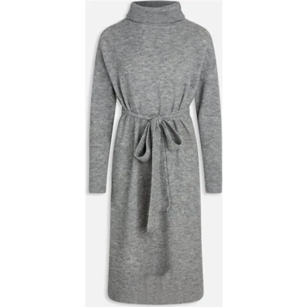 Heerlijke knit dress van Sisters point in een grijze kleur. Turtle nek en de taille riem is afneembaar. Lossere fit. 73% Polyester 25% Acrylic 2% Elastane