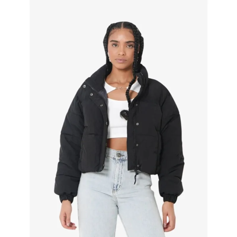Sixth June dames winterjas. Stoer kort bomber model. Onderaan kan het geploft worden. Deze dames winterjas is in de kleur zwart