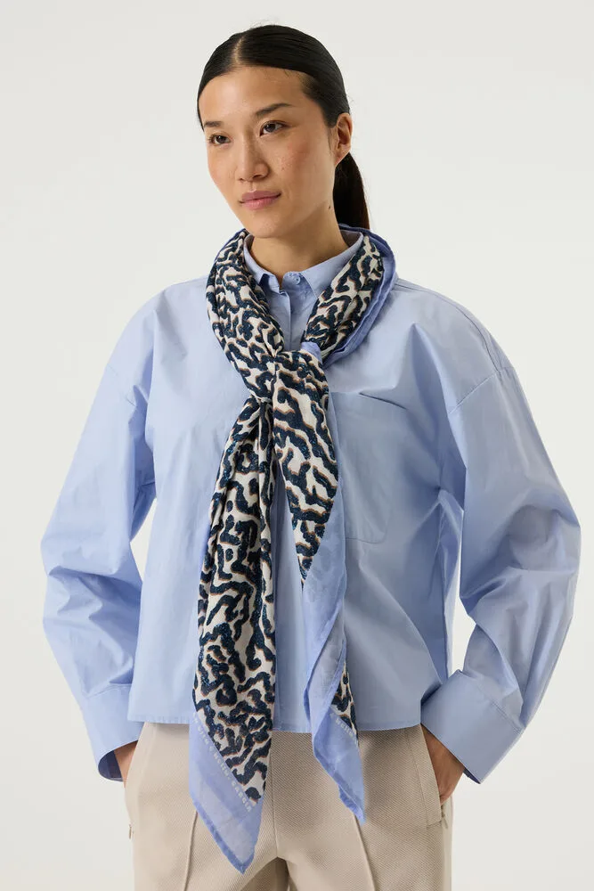 Vierkante sjaal met allover print. Dit item is gemaakt van 100% gerecycled polyester. Hergebruik van materialen draagt bij aan een circulaire economie