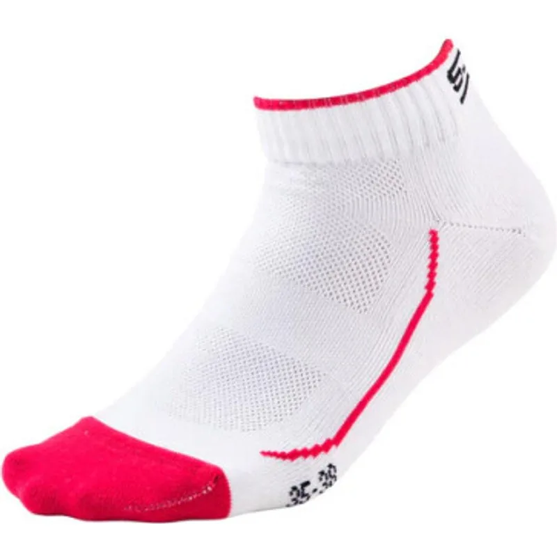 Sjeng Sports Kea Sport Sokken Dames Wit/Rood De Sjeng Sports Kea Sport Sokken zijn vervaardigd van hoogwaardige materialen die zorgen voor een optimale combinatie van comfort en prestatie. De sokken bieden een zachte, gewatteerde voetbed om vermoeidheid te verminderen en schokken te absorberen tijdens intensieve bewegingen. Daarnaast zorgt het ademende materiaal voor een goede ventilatie. Het ergonomische ontwerp van de Kea Sport Sokken zorgt voor een nauwsluitende pasvorm die perfect aansluit op je voeten, zonder te knellen of af te zakken. Dit biedt maximale ondersteuning en voorkomt wrijving en blaren, zelfs tijdens langdurige activiteiten. Pluspunten: + Dankzij een behandeling met Polygiene blijven ze lang fris ruiken. + Een combinatie van wit met rode hielstukken, tenen en strepen langs de voet en langs de enkelboord