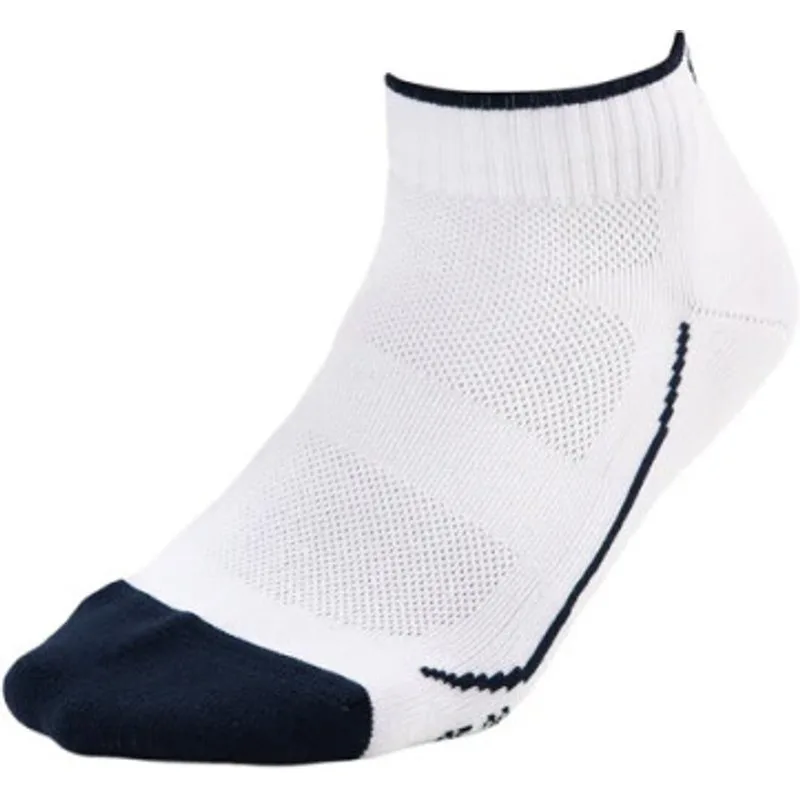 Sjeng Sports Kea Sport Sokken Dames Wit/Donker Blauw De Sjeng Sports Kea Sport Sokken zijn vervaardigd van hoogwaardige materialen die zorgen voor een optimale combinatie van comfort en prestatie. De sokken bieden een zachte, gewatteerde voetbed om vermoeidheid te verminderen en schokken te absorberen tijdens intensieve bewegingen. Daarnaast zorgt het ademende materiaal voor een goede ventilatie. Het ergonomische ontwerp van de Kea Sport Sokken zorgt voor een nauwsluitende pasvorm die perfect aansluit op je voeten, zonder te knellen of af te zakken. Dit biedt maximale ondersteuning en voorkomt wrijving en blaren, zelfs tijdens langdurige activiteiten. Pluspunten: + Dankzij een behandeling met Polygiene blijven ze lang fris ruiken. + Een combinatie van wit met donkerblauwe hielstukken, tenen en strepen langs de voet en langs de enkelboord