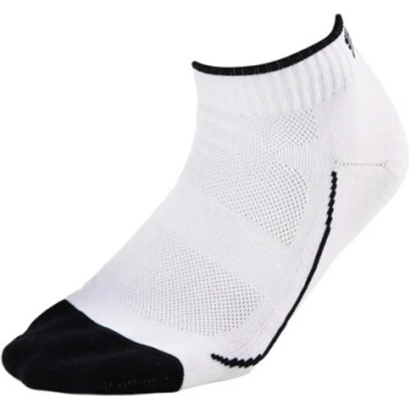 Sjeng Sports Kea Sport Sokken Dames Wit/Zwart De Sjeng Sports Kea Sport Sokken zijn vervaardigd van hoogwaardige materialen die zorgen voor een optimale combinatie van comfort en prestatie. De sokken bieden een zachte, gewatteerde voetbed om vermoeidheid te verminderen en schokken te absorberen tijdens intensieve bewegingen. Daarnaast zorgt het ademende materiaal voor een goede ventilatie. Het ergonomische ontwerp van de Kea Sport Sokken zorgt voor een nauwsluitende pasvorm die perfect aansluit op je voeten, zonder te knellen of af te zakken. Dit biedt maximale ondersteuning en voorkomt wrijving en blaren, zelfs tijdens langdurige activiteiten. Pluspunten: + Dankzij een behandeling met Polygiene blijven ze lang fris ruiken. + Een combinatie van wit met zwarte hielstukken, tenen en strepen langs de voet en langs de enkelboord
