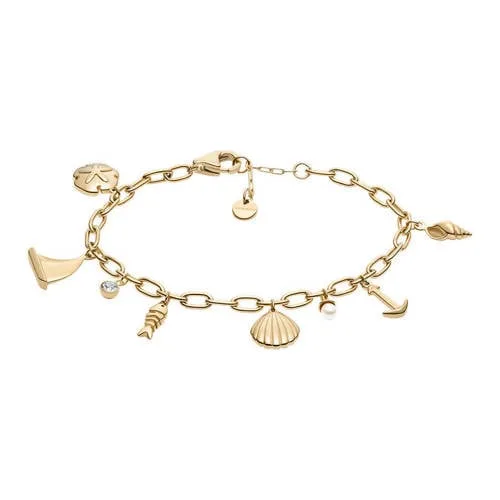 Deze goudkleurige dames armband van Skagen geeft je pols een verfijnde, moderne uitstraling. De armband is subtiel vormgegeven en heeft een slanke, elegante lijn die eenvoudig combineert met zowel dagelijkse outfits als een nette look. Door de goudkleurige afwerking en de kleine decoratieve details ontstaat een sierlijk geheel dat rustig oogt en toch opvalt.Verfijnde details en praktisch ontwerp Gemaakt van stevig staal, waardoor de armband lang mooi blijft Afgewerkt met glass stone, parel en CZ details voor een subtiele glans Goudkleurige tint die goed past bij andere sieraden in warme metalen Verstelbaar ontwerp, zodat de pasvorm rond de pols eenvoudig aan te passen is Voorzien van een karabijnsluiting die stevig sluit en makkelijk te openen isVoor dagelijks dragen en speciale momentenDe armband is geschikt voor dagelijks gebruik, bijvoorbeeld naar je werk of tijdens een etentje. Door het slanke silhouet draag je dit sieraad comfortabel, ook in combinatie met een horloge of andere armbanden. De combinatie van glanzende steentjes en parelaccenten zorgt voor een stijlvolle uitstraling zonder dat het te opvallend wordt.Skagen: tijdloze Scandinavische stijlSkagen staat bekend om sieraden en horloges met een heldere, minimalistische vormgeving. De ontwerpen zijn geïnspireerd op de rust en eenvoud van de Deense kust, met aandacht voor strakke lijnen en doordachte details. Met deze armband kies je voor een sieraad dat past bij een moderne, verzorgde stijl en dat je gemakkelijk combineert met de rest van je sieradencollectie.Een rustige, elegante armband die je sieradendoos op een stijlvolle manier aanvult.