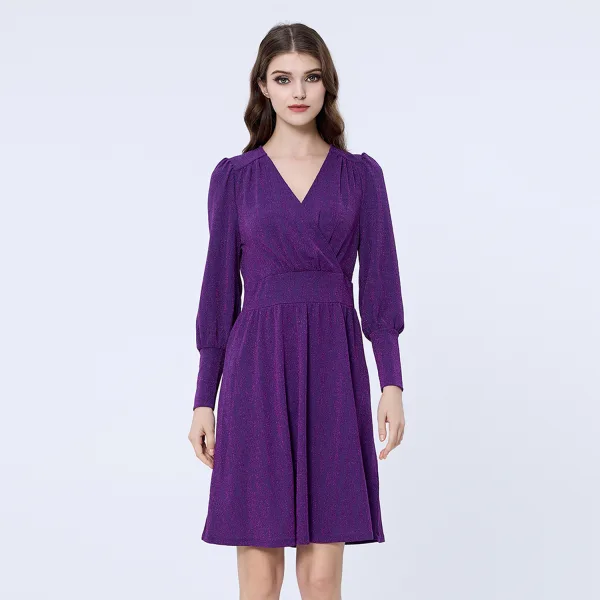 Een nogal feestelijk item gesneden in een gaas met glitterreflecties. Puffy mouwen, v -neck, wikkelpanelen op lijfje, grote tailleband gesneden die het werk, wijd uitlopende rokvolume benadrukt. Een comfortabele jurk om te exposeren tijdens uw volgende cocktail of uitje. Productdetails: • vorm: skater • Lengte: 94 cm • v -neck • Lange mouwen • Onzichtbare zipper linkszijde