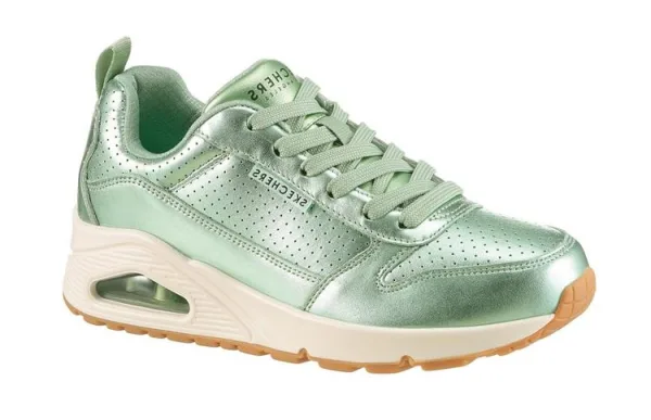 - Bij bol.com kun je Dames Sneakers Skechers Uno Metallixs Sage Groen - Maat 41 kopen voor slechts €75,00 , dat is 25% goedkoper dan bij Topshoe (€99,95).