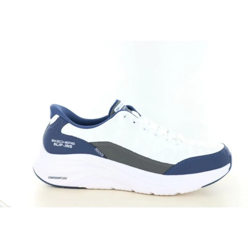 De Skechers 232619 Slip-ins sneaker voor heren combineert modern design met ultiem gebruiksgemak. Deze sportieve sneaker in wit met blauwe details is ontworpen voor mannen die comfort, stijl en gemak willen combineren. Dankzij de innovatieve Skechers Hands Free Slip-ins technologie stapt u eenvoudig in de schoen zonder te bukken of uw handen te gebruiken.Het bovenwerk van hoogwaardig synthetisch materiaal geeft de sneaker een moderne en verzorgde uitstraling, terwijl het materiaal tegelijkertijd licht en onderhoudsvriendelijk blijft. De elastische veters zorgen voor een comfortabele en flexibele pasvorm, zodat de schoen altijd goed om de voet aansluit.De Contour Foam tussenzool biedt uitstekende demping en ondersteuning bij iedere stap. Hierdoor is deze sneaker perfect voor lange dagen, wandelen, reizen of dagelijks gebruik. Skechers staat wereldwijd bekend om zijn focus op comfort, innovatie en lichtgewicht schoenen, en dat merkt u direct zodra u deze sneaker aantrekt.Dankzij het tijdloze sportieve design combineert u deze witte Skechers heren sneaker moeiteloos met een jeans, chino of casual outfit. Een ideale schoen voor mannen die waarde hechten aan comfort zonder in te leveren op stijl.