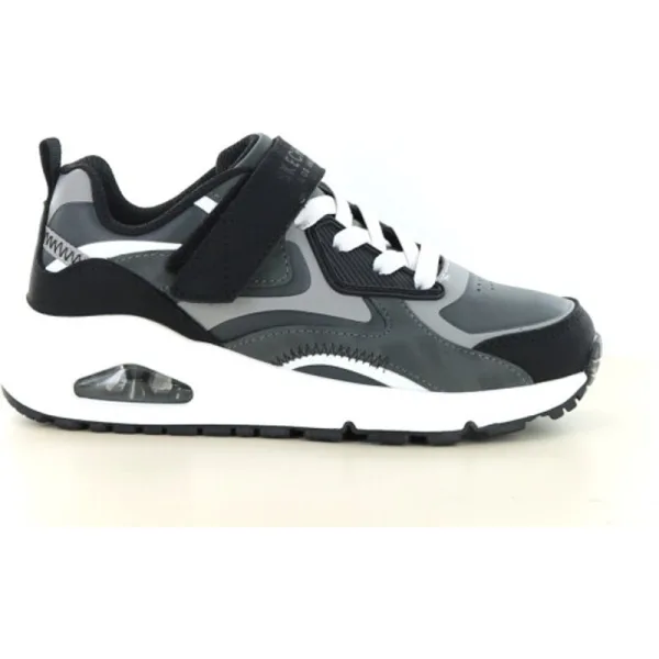 De Skechers 403646 is een sportieve en praktische jongenssneaker die comfort en gemak combineert. Dankzij de handige klittenbandsluiting trek je deze schoenen in een handomdraai aan en uit – perfect voor kinderen die graag zelf hun schoenen aantrekken.Het bovenwerk van camrelle leerlook geeft de sneaker een stoere uitstraling en zorgt tegelijkertijd voor stevigheid en duurzaamheid. De combinatie van grijs en zwart maakt dit model veelzijdig en makkelijk te combineren met zowel sportieve als casual outfits.De lichte en flexibele zool biedt goede grip en ondersteuning, waardoor deze Skechers schoenen ideaal zijn voor school, buitenspelen en dagelijks gebruik. Skechers staat wereldwijd bekend om hun comfortabele en trendy schoenen voor het hele gezin – en dit model bewijst waarom.