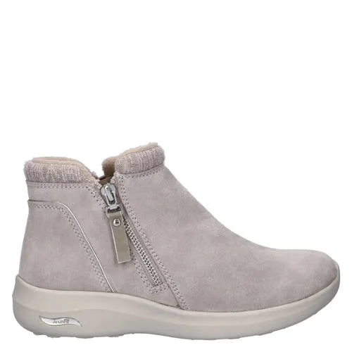 Deze Skechers Arch Fit Ease enkelboot heeft een ritssluiting en een platte zool. De buitenkant is gemaakt van suède en de binnenkant is van textiel, geschikt voor dagelijks gebruik.