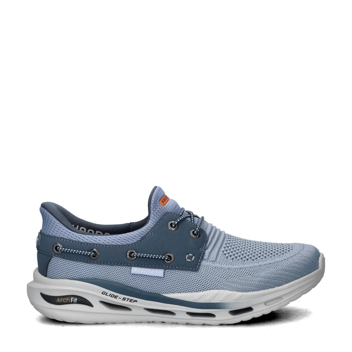 Skechers Arch Fit Orvan - Starport heren sneaker Stap moeiteloos in het comfort van de toekomst met deze innovatieve instapschoenen die stijl en gemak perfect combineren. Het revolutionaire Hands Free Slip-ins systeem met de exclusieve Heel Pillow zorgt ervoor dat je de schoenen eenvoudig aan kunt trekken zonder je handen te gebruiken. Het bovenwerk van ademend technisch textiel biedt optimale ventilatie en een verfijnde nautische uitstraling. Geniet van superieure ondersteuning met het podologisch gecertificeerde Arch Fit voetbed, dat speciaal is ontworpen om druk te verminderen en gewicht over de voet te verdelen. Het voetbed is bovendien uitneembaar en vormt zich naar de contouren van je voet voor een persoonlijke pasvorm. De Glide-Step tussenzool biedt een lichtgewicht, geometrische demping die zorgt voor een natuurlijke voortbeweging en een zachte landing. Dankzij de Relaxed Fit geniet je van extra bewegingsvrijheid bij de voorvoet, wat essentieel is voor dagelijks comfort. Deze