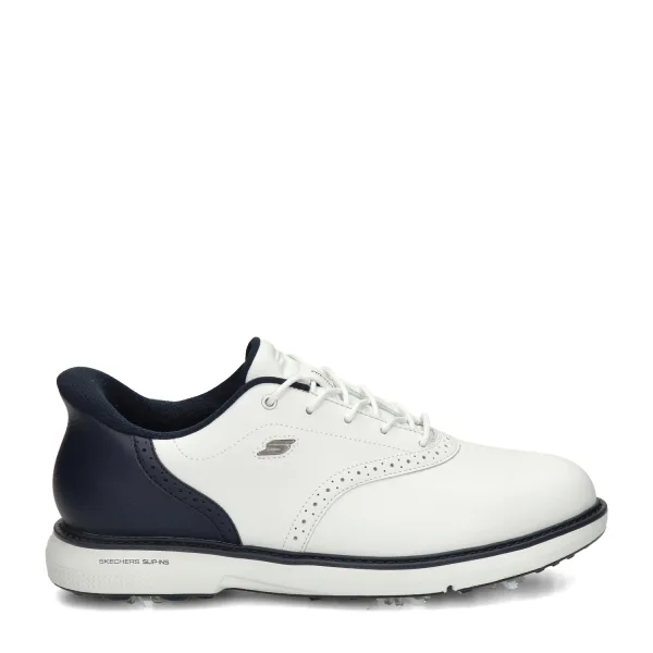 Skecehrs Hands Free Slip-In Golf Pro Prestige heren golfschoen Hole in One!!!! Met deze golfschoenen van Skechers kun je midget-golf achter je laten en aan het echte werk beginnen. Uitgevoerd in imitatieleer met elegante broque details. Gevoerd met comfortabel textiel. Dankzij de ingebouwde schoenlepel en dikke Heel Pillow trek je deze golfschoenen zonder handen aan. Voorzien van een memoryfoam voetbed die optimale demping en comfort biedt. Afgewerkt met een speciale zool met schokabsorberend effect.