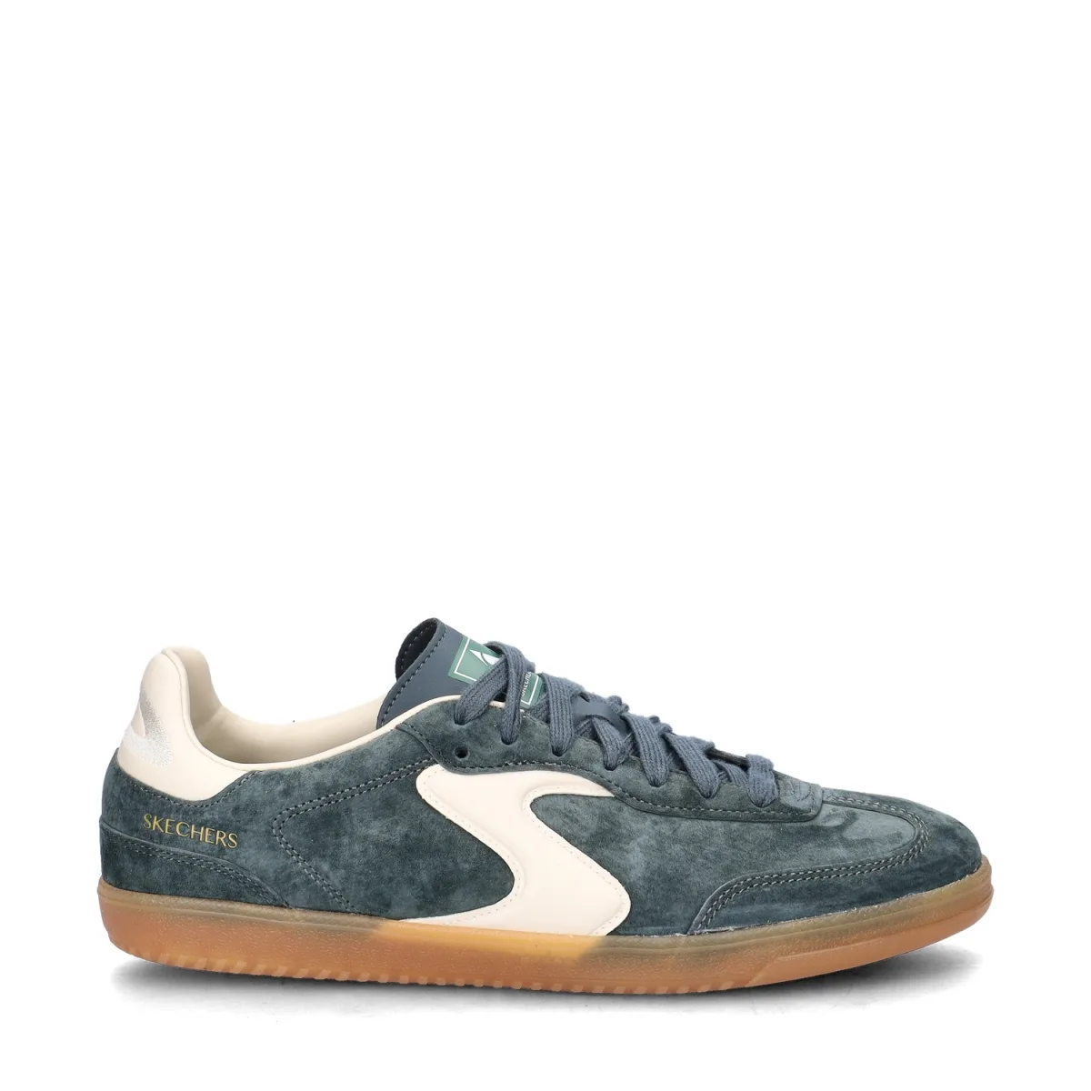 Skechers Hotshot heren sneaker Deze leuke sneakers zijn geïnspireerd op voetbalschoen en hebben een echte retrolook. Helemaal volgens de nieuwste modetrends. Uitgevoerd in leer met suède details. Het materiaal is soepel en vormt zich hierdoor makkelijk om de voet. Gevoerd met imitatieleer en textiel. De licht gewatteerde hielkap zorgt voor een zachtere loopervaring. Bevat een Air-Cooled Memoryfoam-voetbed die een goede vochtafvoer garandeert en de voeten op aangename temperatuur houdt. Afgewerkt met een rubberen gumsole die goede grip biedt tijdens het lopen.