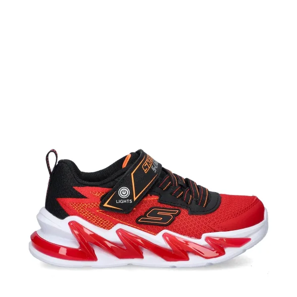 Skechers Light Surge jongens sneaker Flitsende schoenen in een flitsend kleurtje. Met deze Skechers val je wel op! Uitgevoerd in een combinatie van textiel en imitatieleer. Met de elastische veters en klittenbandsluiting trek je ze super makkelijke aan- en uit. Gevoerd met mesh-textiel wat een goede warmte- en vochtafvoer biedt en hierdoor de schoen langer droog en fris houdt. Voorzien van een memoryfoam-voetbed die bij iedere stap fijne demping geeft. Afgewerkt met een schokabsorberende EVA-loopzool met lichtjes die oplichten wanneer je loopt. Let op! Het aan-/uitknopje voor de lichtjes bevind zich op de klittenbandsluiting.