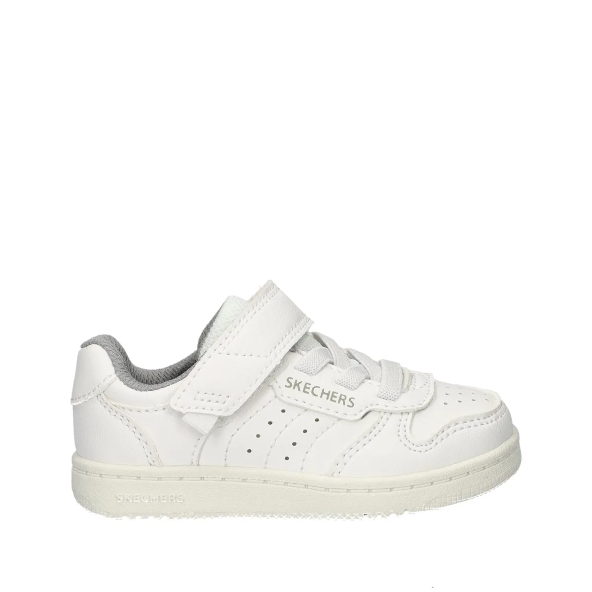Skechers Quick Street jongens sneaker Witte gympies zijn voor iedereen en hoe schattig zijn deze! Uitgevoerd in imitatieleer met handige klittenbandsluiting. Gevoerd met mesh-textiel wat een goede vochtabsorberende werking heeft. De gewatteerde hielkap zorgt voor meer zachtheid. Voorzien van een foam-voetbed met lichte demping. Afgewerkt met een rubberen loopzool.