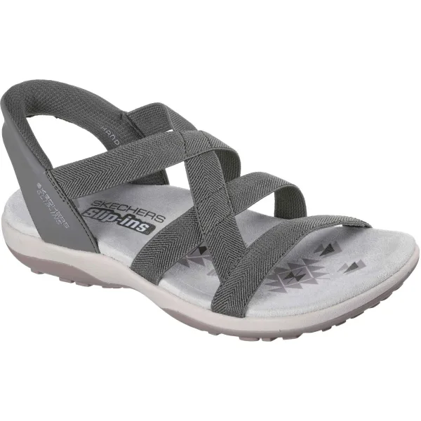 Geniet van zonnige dagen in luchtig comfort met Skechers Hands Free Slip-ins: Reggae Slim – Stretch Flex. Ontworpen met onze Heel Pillow, heeft deze sandalen met bandjes een bovenwerk van rekbare stof met een achterkant en een gewatteerde voetbed.
