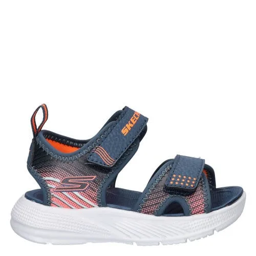 Op zoek naar lichte, praktische sandalen voor elke dag? Met de Skechers Microspec Splash jongens sandaal zitten kindervoeten comfortabel, of het nu naar school, het strand of de camping is. Deze blauwe sandaal met oranje accenten is gemaakt van imitatieleer en heeft een sportieve look die goed past bij korte broeken en luchtige zomeroutfits.Comfort en gemak voor kleine voeten Gemaakt van 100% imitatieleer, stevig en tegelijk licht van gewicht Twee verstelbare banden met klittenbandsluiting voor een goede pasvorm Zachte textielen voering die prettig aanvoelt op blote voeten Foam voetbed voor fijne demping bij elke stap Rubberen loopzool met schok absorberende werking en platte zool met hakhoogte van 2,5 cm Normale leest, geschikt voor peuters, kleuters en schoolkinderen Wasmachine wasbaar, handig na een dag zand, water of modderIdeaal voor zomerse dagen en vakantiesDeze sandaal is gemaakt voor dagelijks gebruik in de zomer. De klittenbandsluitingen gaan snel open en dicht, zodat je kind de sandalen eenvoudig zelf kan aan- en uittrekken. Dankzij het dempende voetbed en de soepele zool blijft lopen prettig, ook tijdens lange dagen buiten spelen.Skechers: sportieve schoenen voor actief bewegenSkechers staat bekend om comfortabele, sportieve schoenen die goed aansluiten bij een actieve levensstijl. De kindermodellen zijn ontworpen met aandacht voor draagcomfort, praktische details en een speelse uitstraling, zodat kinderen vrij kunnen rennen, springen en spelen.Een handige, comfortabele sandaal voor elke zomerdag vol avontuur.