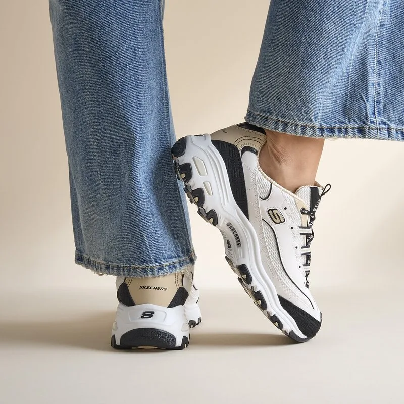 Ontdek de Skechers D'lites Retro Rewind sneakers. Het synthetische bovenwerk en de textielen voering zorgen voor draagcomfort. De flexibele rubberen zool biedt uitstekende grip en de schokabsorberende en ondersteunende tussenzool voor extra comfort. Dankzij de vetersluiting trek je deze moderne sneakers snel aan en uit, met een perfecte pasvorm.