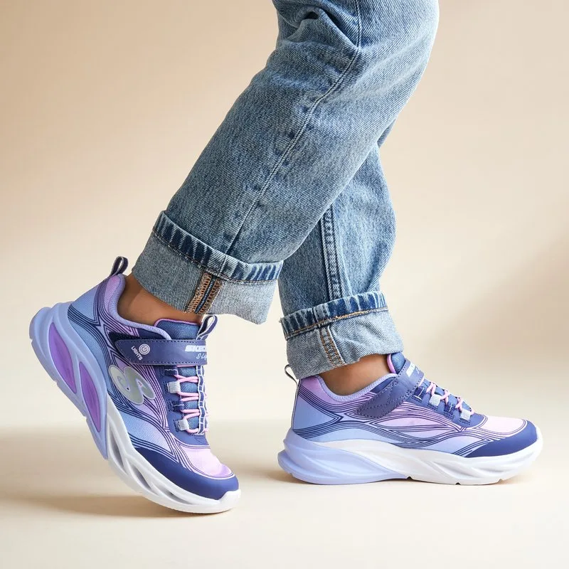 Verlicht alle plekken waar je loopt! Het bovenwerk van deze Skechers S-lights Cosmic Glow is glinsterend en voorzien van lichtjes in kleurverloop van mesh en synthetisch materiaal. De tussenzool is schokabsorberend en door de aanpasbare sluiting zijn ze gemakkelijk aan en uit te trekken voor een goede pasvorm. De fexibele buitenzool zorgt voor grip. Grotere kindermaten hebben een aan/uit-knopje voor de lampjes.