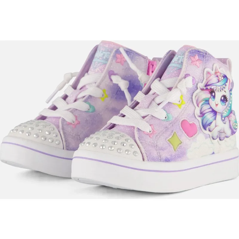 Ontdek unicorn magie met deze Skechers Twi-Lites 2.0 sneakers! Gemaakt van textiel en synthetisch materiaal. Dankzij het dempende voetbed met Air-Cooled Memory Foam lopen de schoenen extra comfortabel. De tussenzool is voorzien van een luchtkussen en biedt uitstekende ondersteuning en schokdemping bij iedere stap. De rubberen zool is flexibel en zorgt voor de juiste grip.