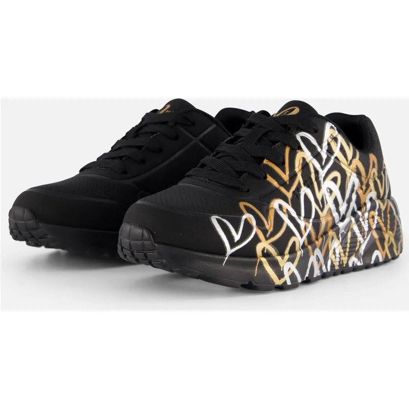 Skechers Uno Lite - Metallic Love Meisjes Sneakers - Zwart/Goud...