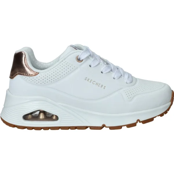Deze Skechers Uno Gen1 Shimmer Away Sneakers zijn voor Meisjes in de kleur Wit. De schoenen zijn gemaakt van het materiaal Kunstleer en de voering is gemaakt van . De voetbreedte van de schoenen is G - normaal.