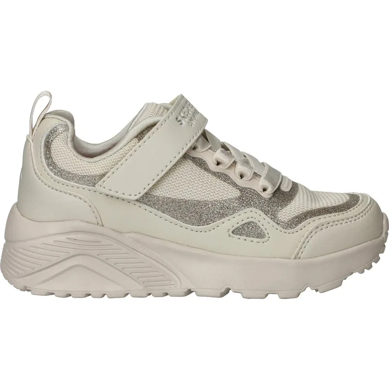 Deze Skechers Uno Lite Glisten Steps Sneakers zijn voor Meisjes in de kleur Beige. De schoenen zijn gemaakt van het materiaal Kunstleer en de voering is gemaakt van . De voetbreedte van de schoenen is G - normaal.
