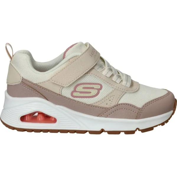 Deze Skechers Uno Mesh Pop Sneakers zijn voor Meisjes in de kleur Beige. De schoenen zijn gemaakt van het materiaal Textiel;Kunstleer en de voering is gemaakt van . De voetbreedte van de schoenen is G - normaal.