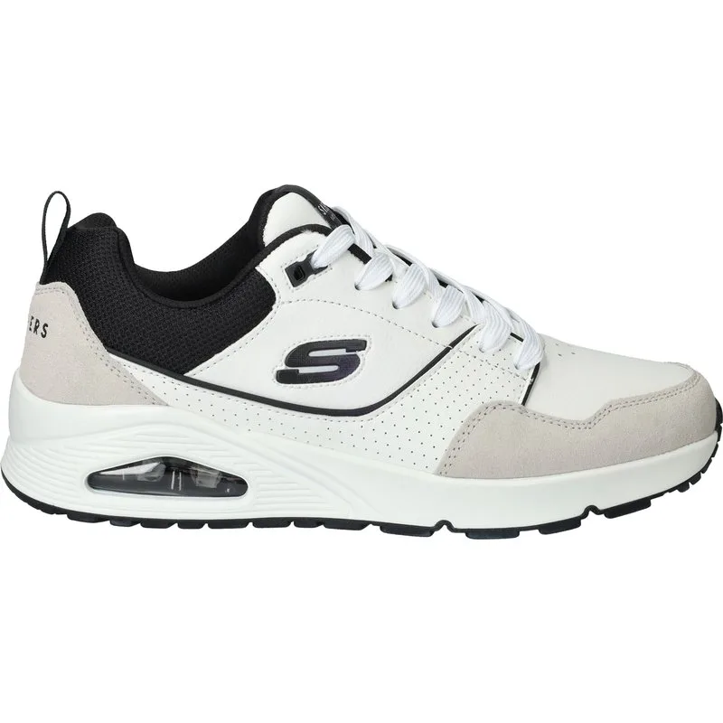 Deze Skechers Uno Retro One Sneakers zijn voor Heren in de kleur Wit. De schoenen zijn gemaakt van het materiaal Leer;Kunstleer en de voering is gemaakt van . De voetbreedte van de schoenen is G - normaal.